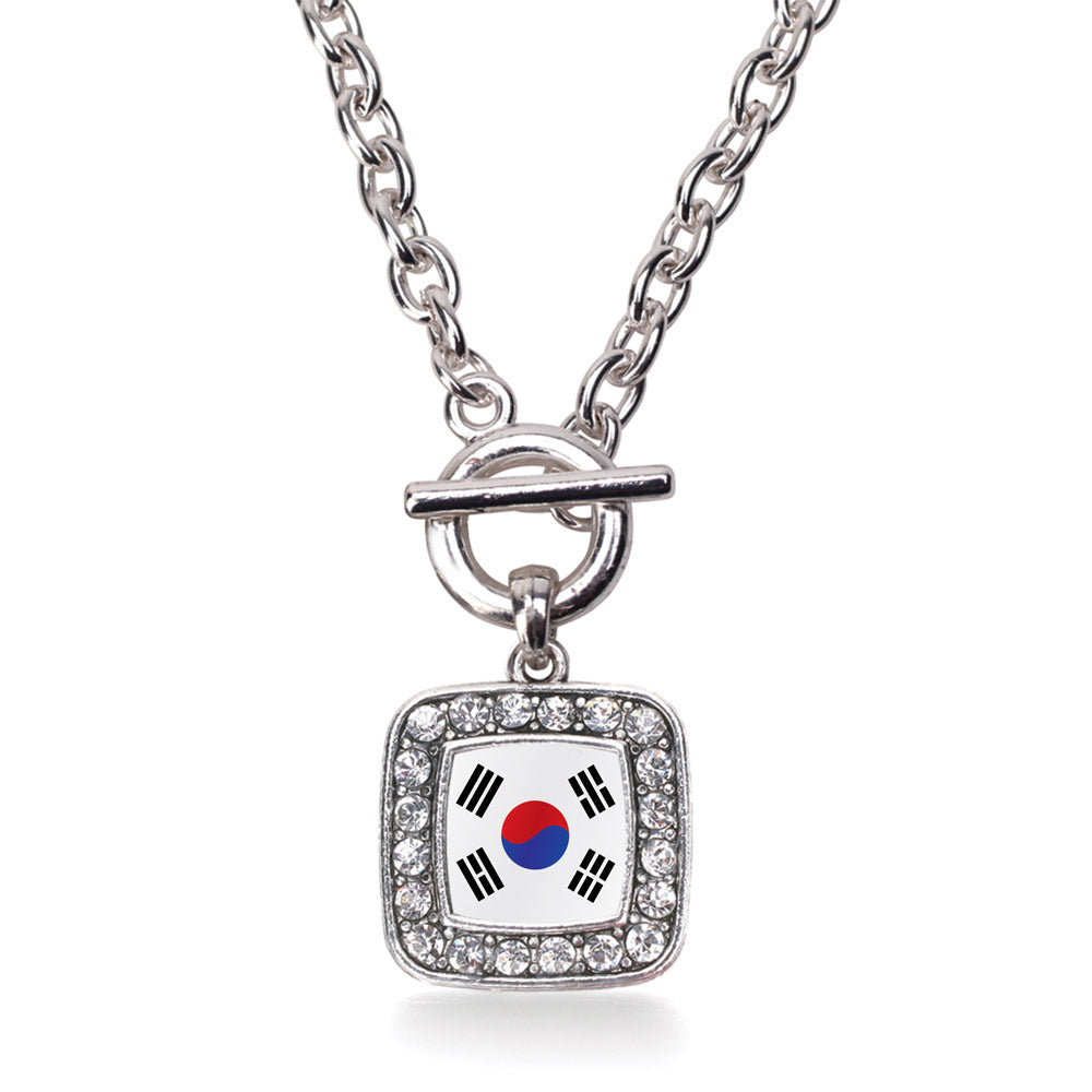 Silver Republic of Korea Flag Square Charm Toggle Necklace