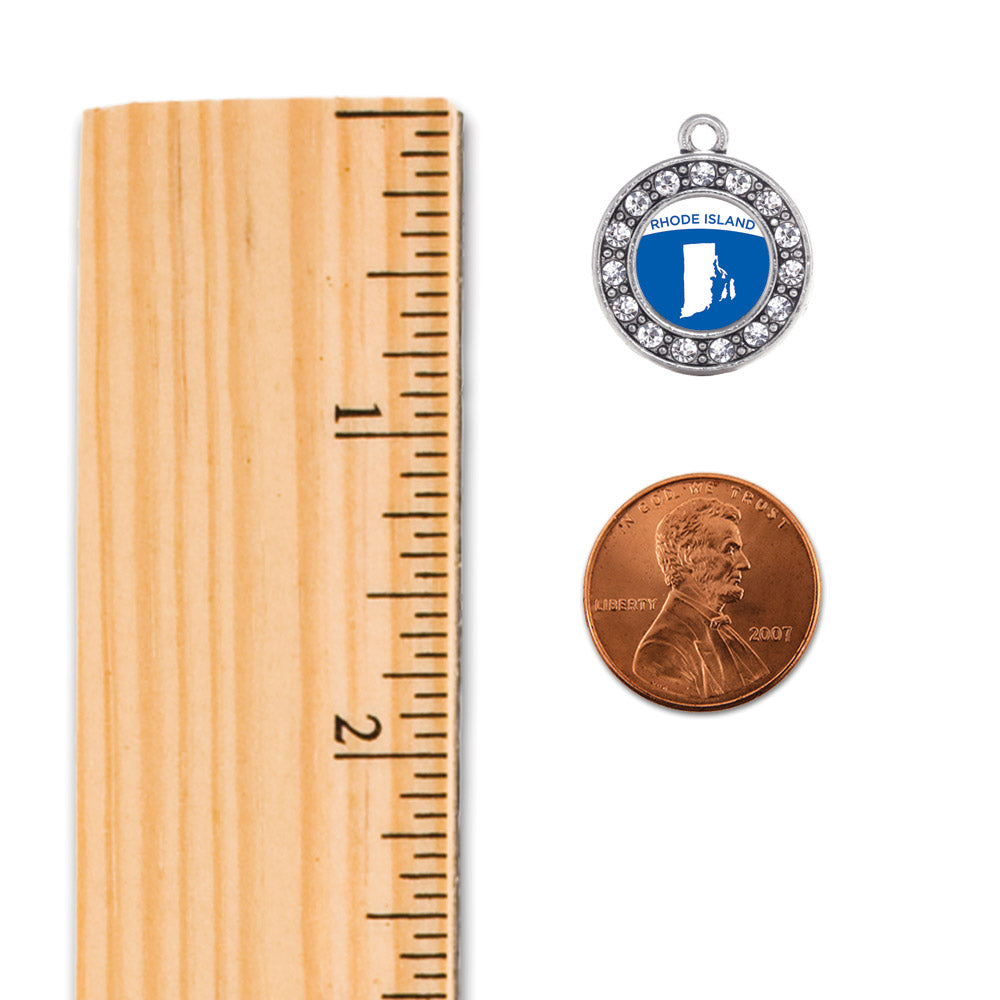 Our sparkling braided bracelet, equipped with a stylish lobster claw clasp and the Rhode Island Outline circle charm, is crafted from white metal with a silver plated finish and accented with cubic zirconia stones.