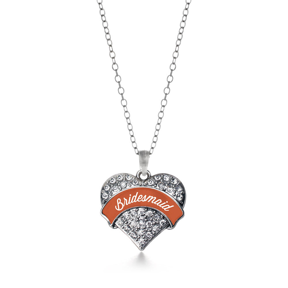 Our sparkling classic necklace, equipped with a stylish lobster claw clasp and the Rust Bridesmaid pave heart charm, is crafted from white metal with a silver plated finish and accented with cubic zirconia stones.