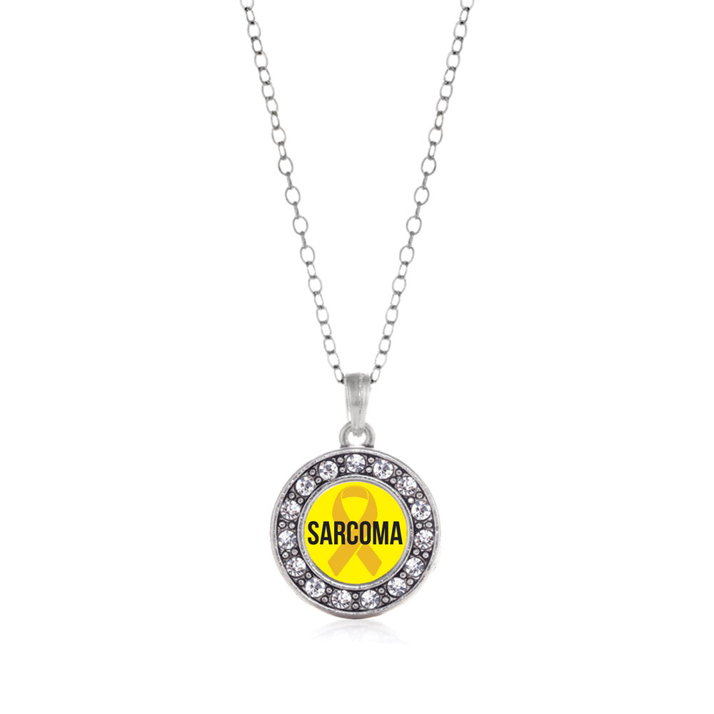 Our sparkling classic necklace, equipped with a stylish lobster claw clasp and the Sarcoma circle charm, is crafted from white metal with a silver plated finish and accented with cubic zirconia stones.