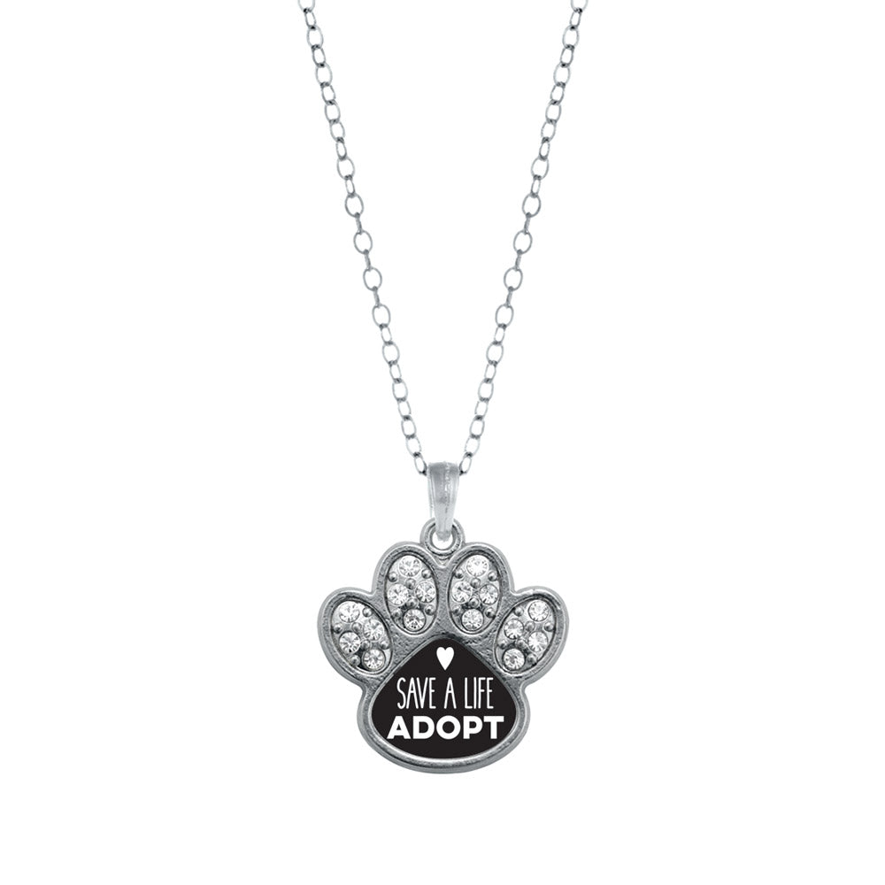 Silver Save A Life, Adopt Pave Paw Charm Classic Necklace