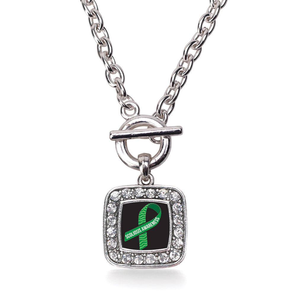 Silver Scoliosis Awareness Square Charm Toggle Necklace