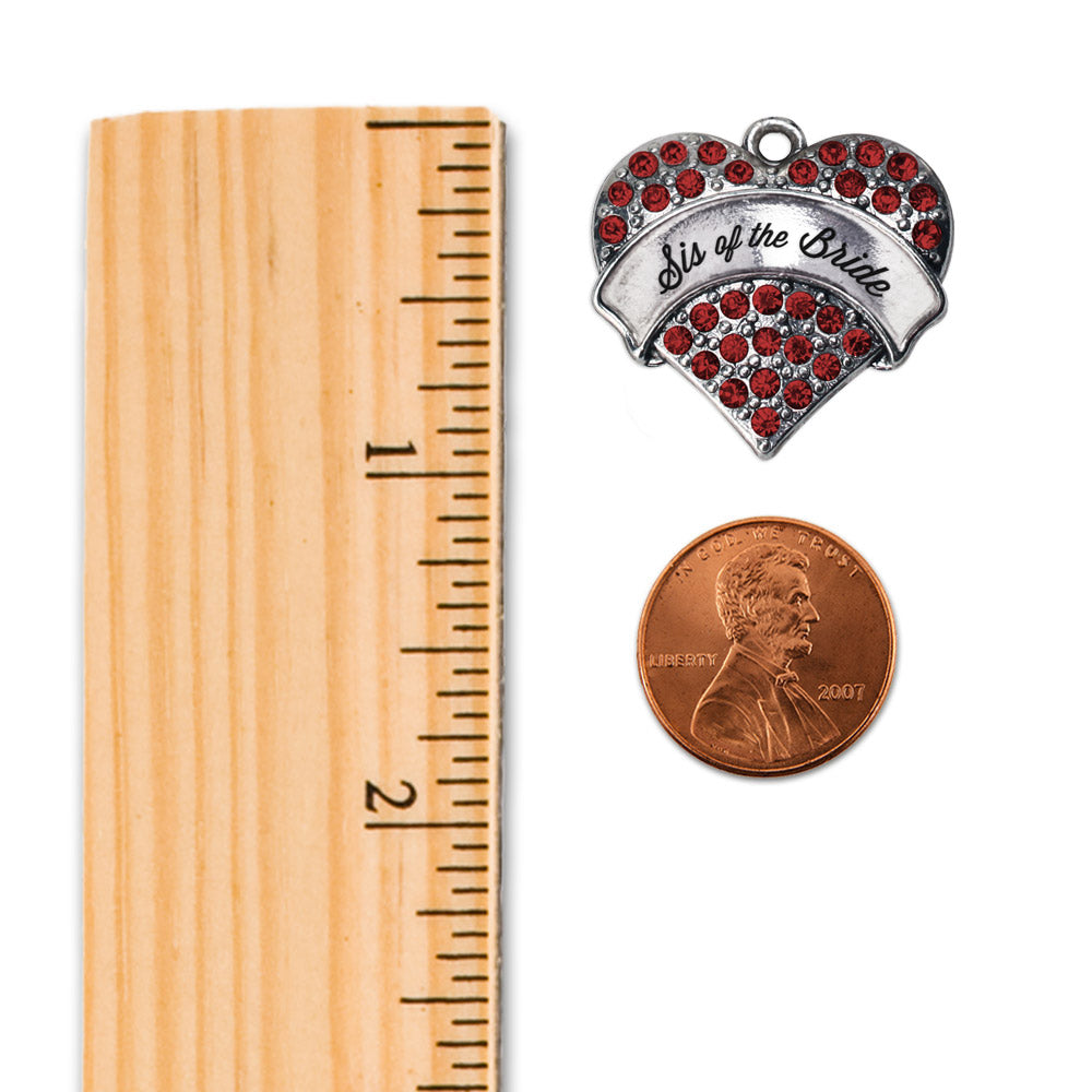 Our sparkling toggle necklace, equipped with a stylish toggle clasp and the Script Red Sis of the Bride red pave heart charm, is crafted from white metal with a silver plated finish and accented with cubic zirconia stones.