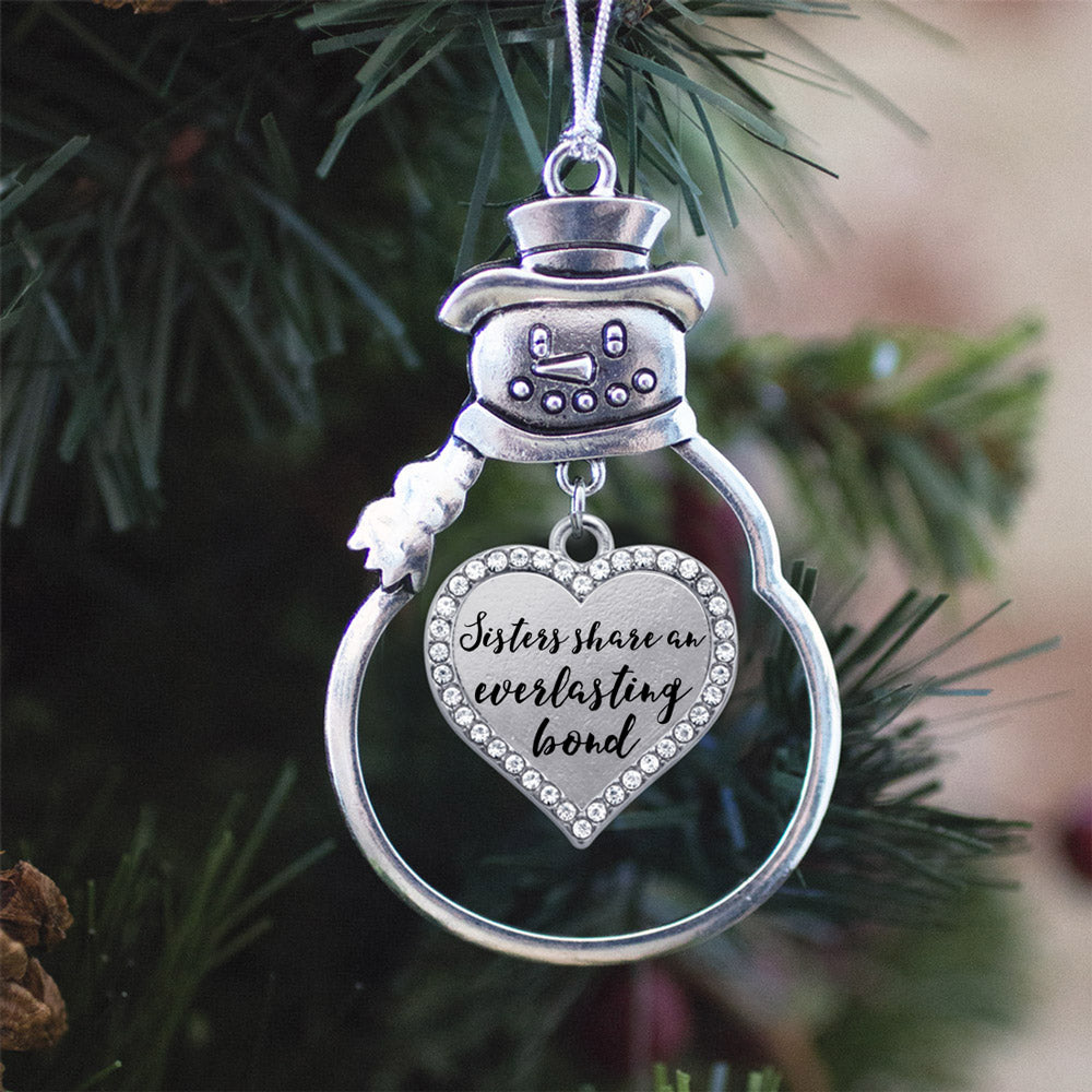 Silver Sister Bond Open Heart Charm Snowman Ornament