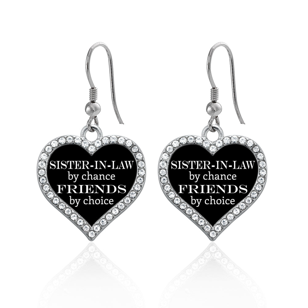 Silver Sister-in-law by Chance, Friends by Choice Open Heart Charm Dangle Earrings