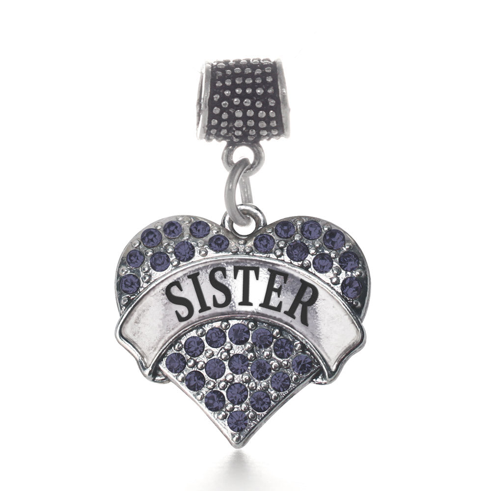 Silver Sister Navy Blue Blue Pave Heart Memory Charm