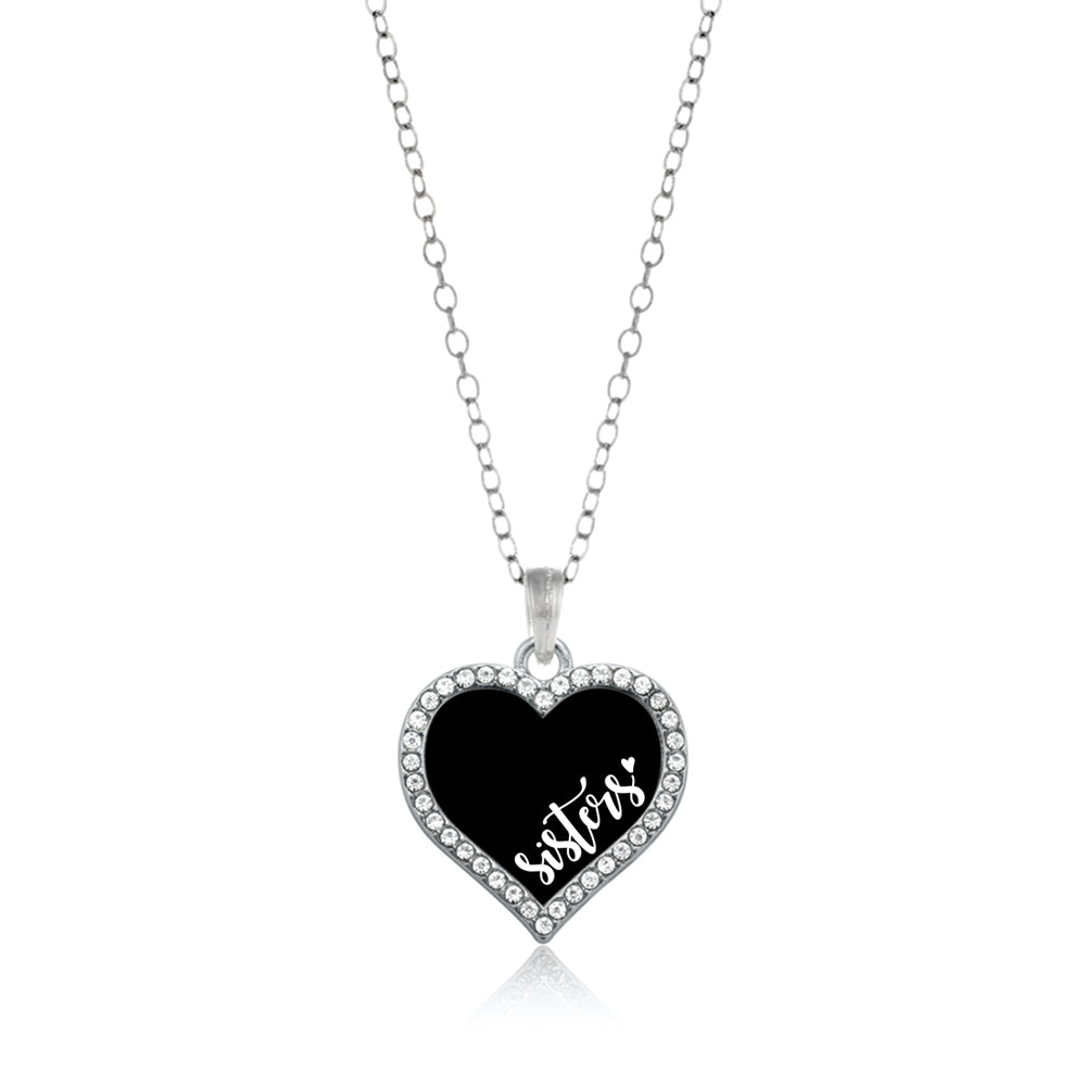 Our sparkling classic necklace, equipped with a stylish lobster claw clasp and the Sisters - Black and White open heart charm, is crafted from white metal with a silver plated finish and accented with cubic zirconia stones.