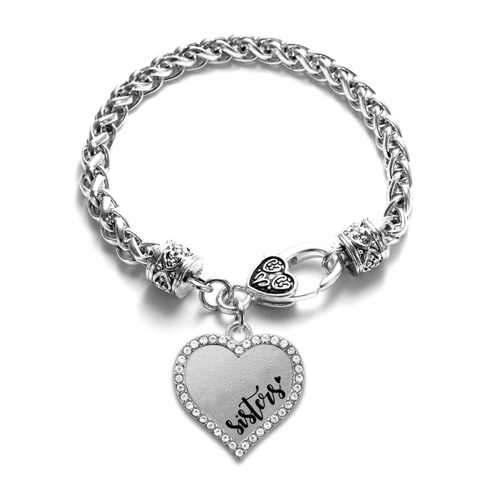 Our sparkling braided bracelet, equipped with a stylish lobster claw clasp and the Sisters open heart charm, is crafted from white metal with a silver plated finish and accented with cubic zirconia stones.