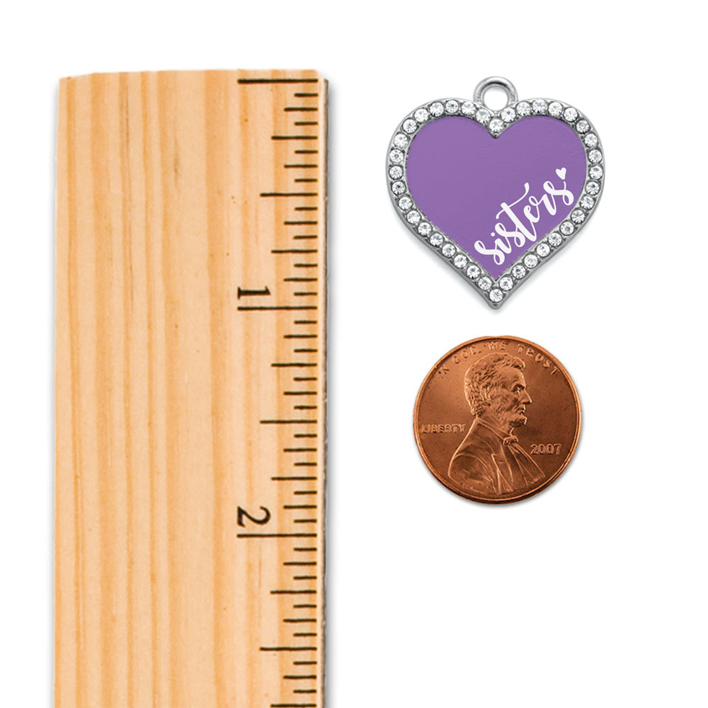 Our sparkling dangle earrings, equipped with a stylish french hook backing and the Sisters - Purple open heart charm, is crafted from white metal with a silver plated finish and accented with cubic zirconia stones.