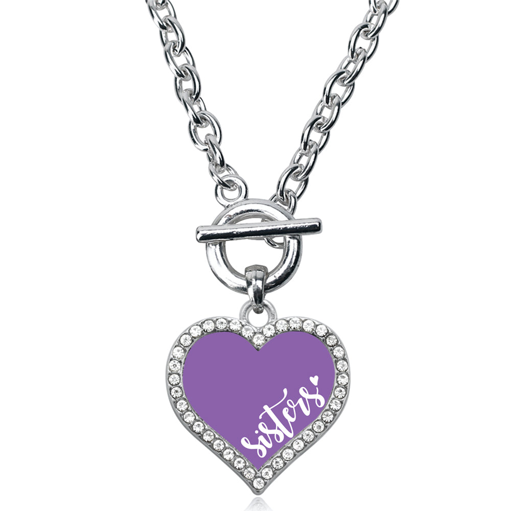 Our sparkling toggle necklace, equipped with a stylish toggle clasp and the Sisters - Purple open heart charm, is crafted from white metal with a silver plated finish and accented with cubic zirconia stones.