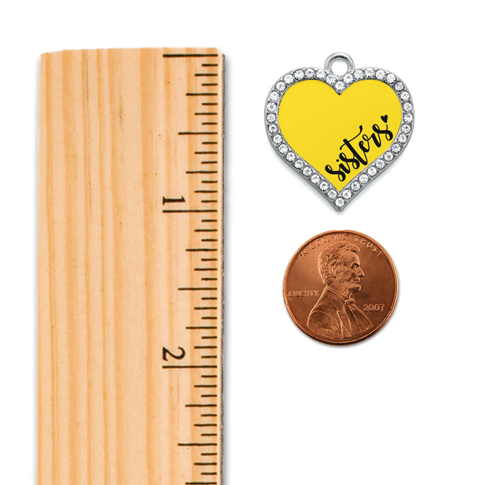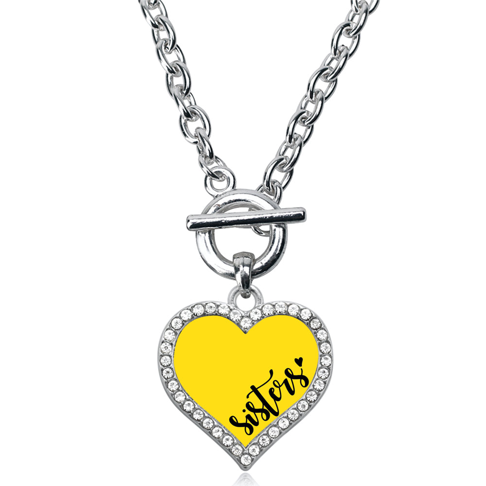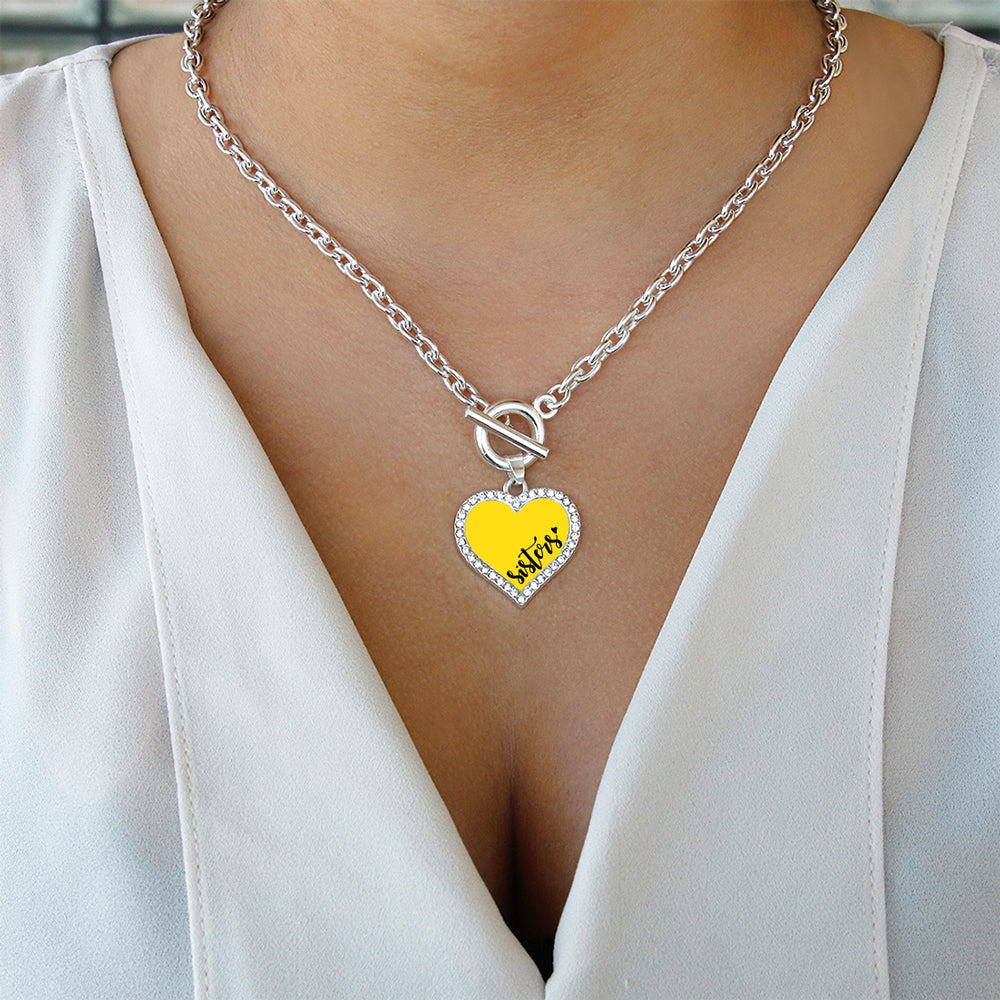 Our sparkling toggle necklace, equipped with a stylish toggle clasp and the Sisters - Yellow open heart charm, is crafted from white metal with a silver plated finish and accented with cubic zirconia stones.