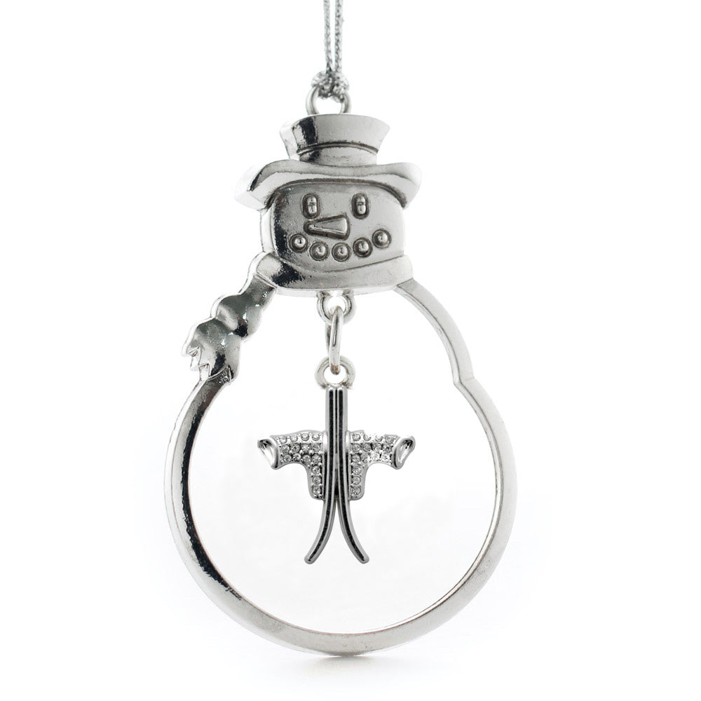 Silver Skiing Charm Snowman Ornament