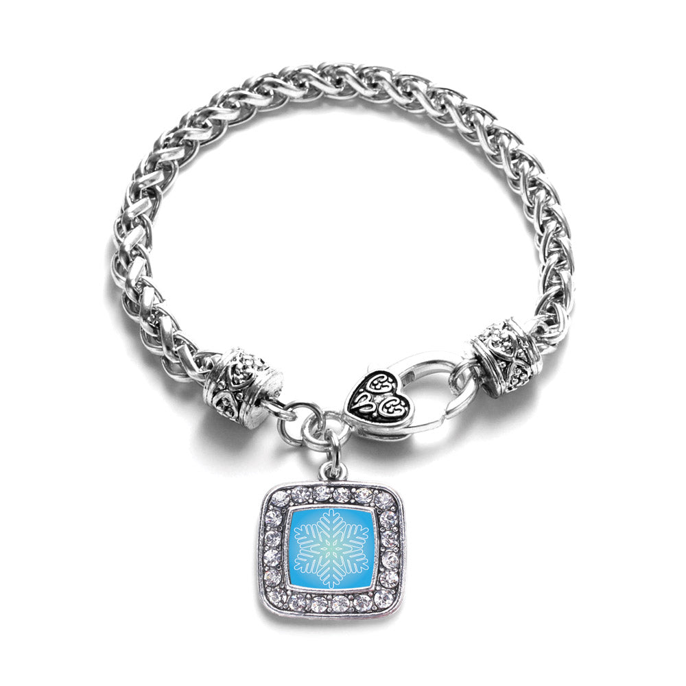 Our sparkling braided bracelet, equipped with a stylish lobster claw clasp and the Snowflake square charm, is crafted from white metal with a silver plated finish and accented with cubic zirconia stones.