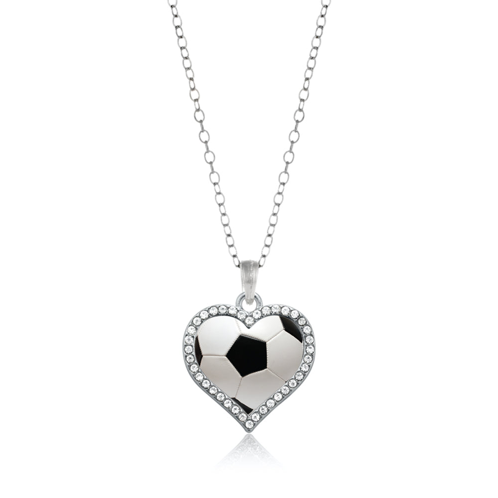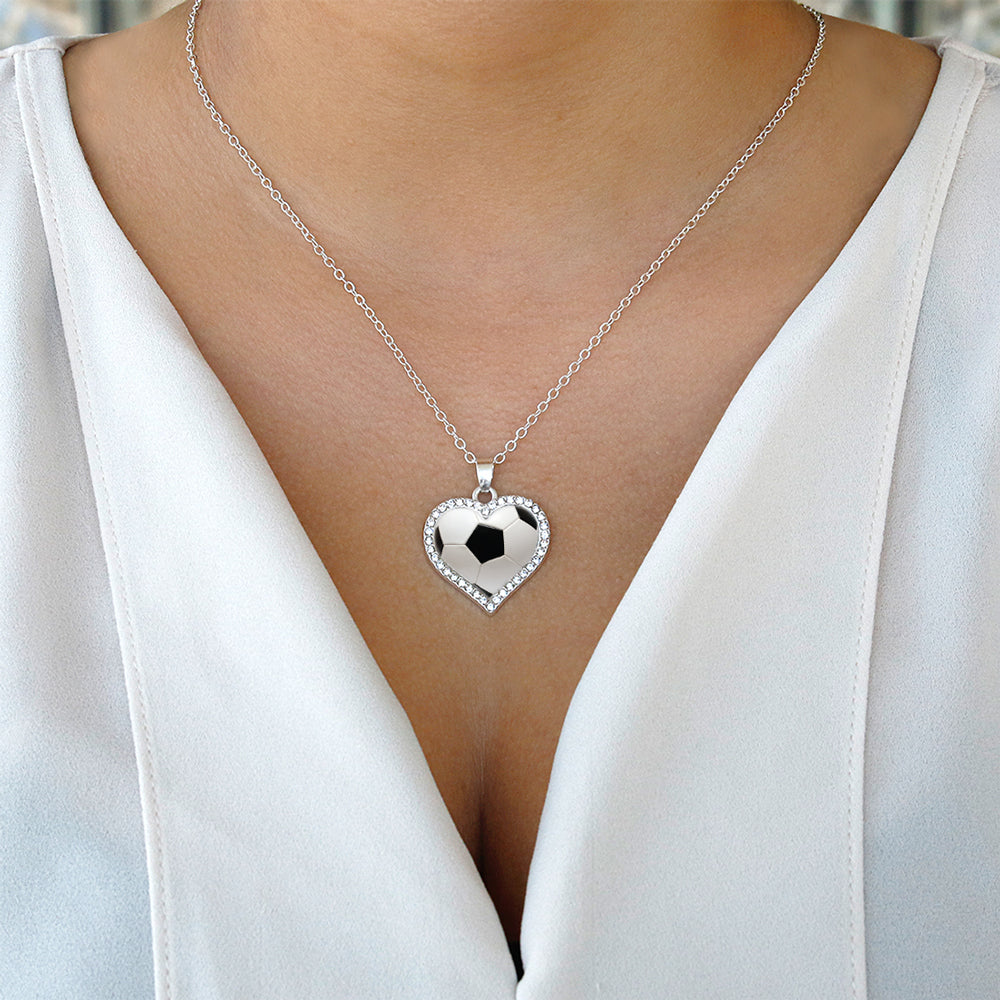 Our sparkling classic necklace, equipped with a stylish lobster claw clasp and the Soccer Ball open heart charm, is crafted from white metal with a silver plated finish and accented with cubic zirconia stones.