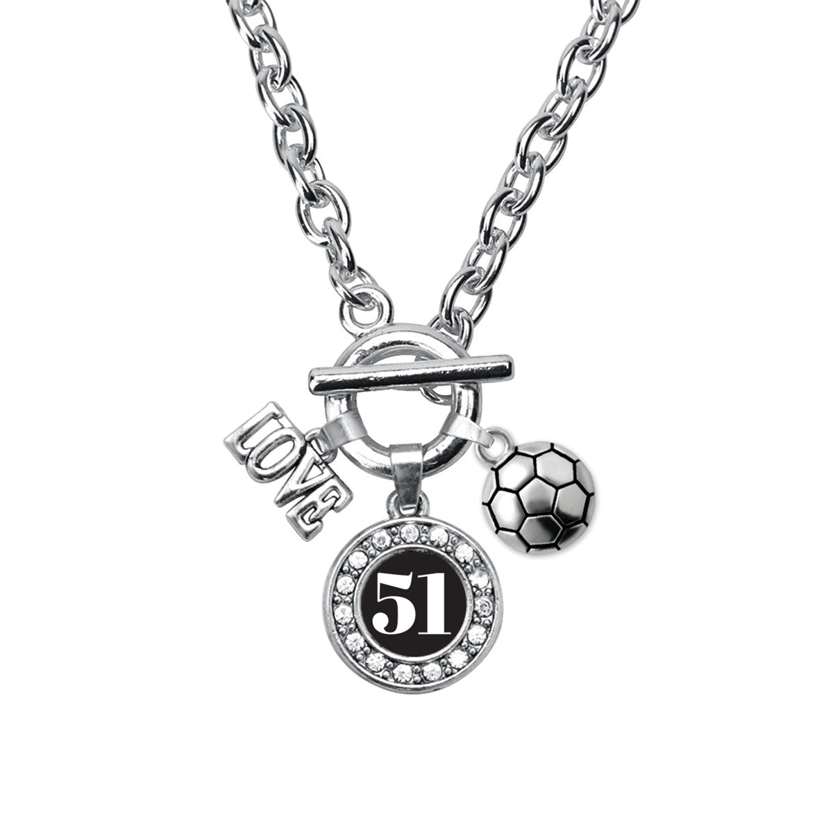 Silver Soccer - Sports Number 51 Circle Charm Toggle Necklace