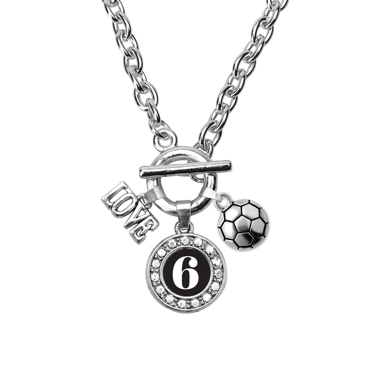 Silver Soccer - Sports Number 6 Circle Charm Toggle Necklace