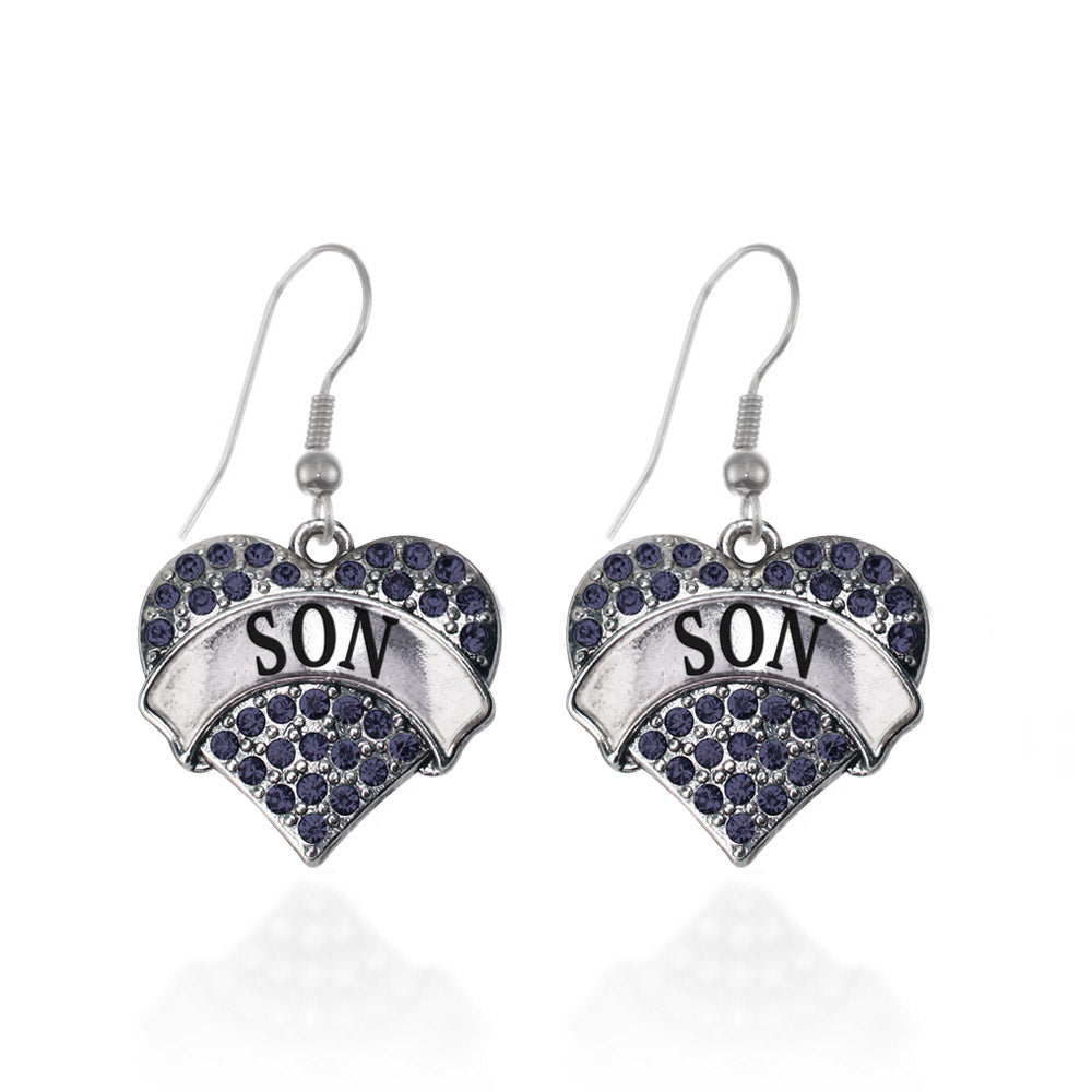 Our sparkling dangle earrings, equipped with a stylish french hook backing and the Son Navy Blue blue pave heart charm, is crafted from white metal with a silver plated finish and accented with cubic zirconia stones.