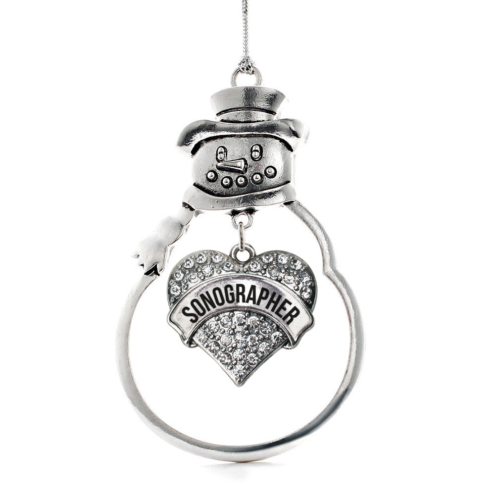 Silver Sonographer Pave Heart Charm Snowman Ornament