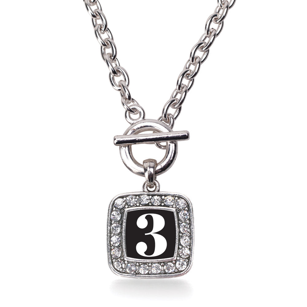 Silver Sport Number 3 Square Charm Toggle Necklace