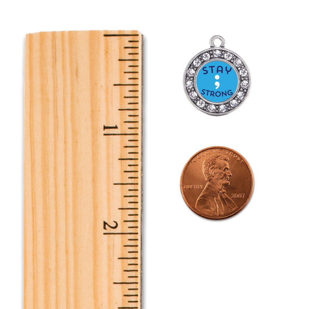 Silver Stay Strong Semicolon Movement Circle Charm Toggle Bracelet