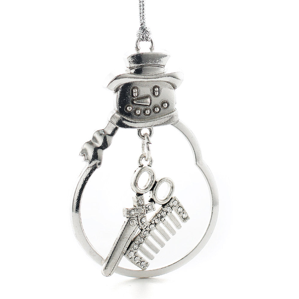 Our sparkling snowman ornament, equipped with a stylish silver rope and the Stylist charm, is crafted from white metal with a silver plated finish.