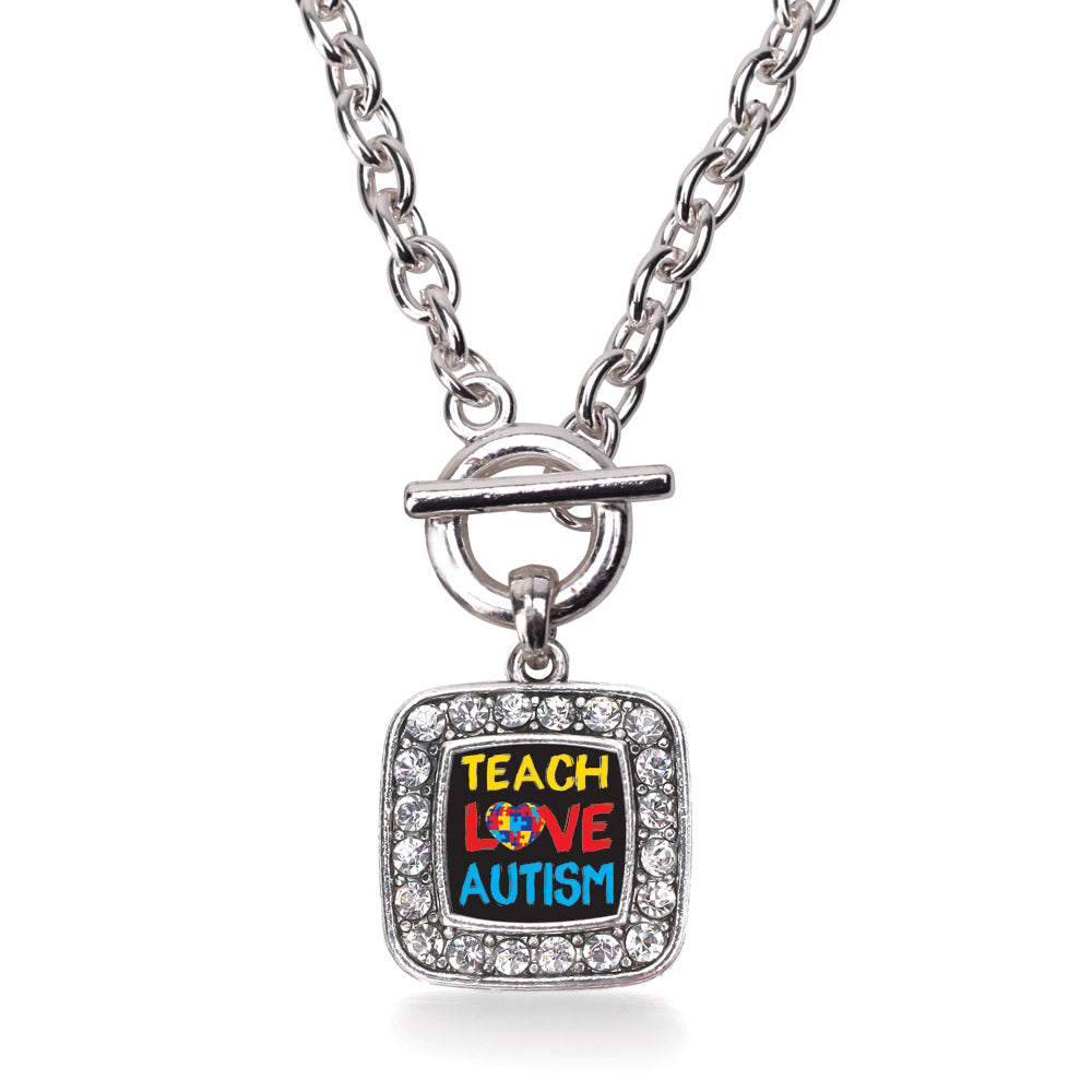 Silver Teach Love Autism Awareness Square Charm Toggle Necklace