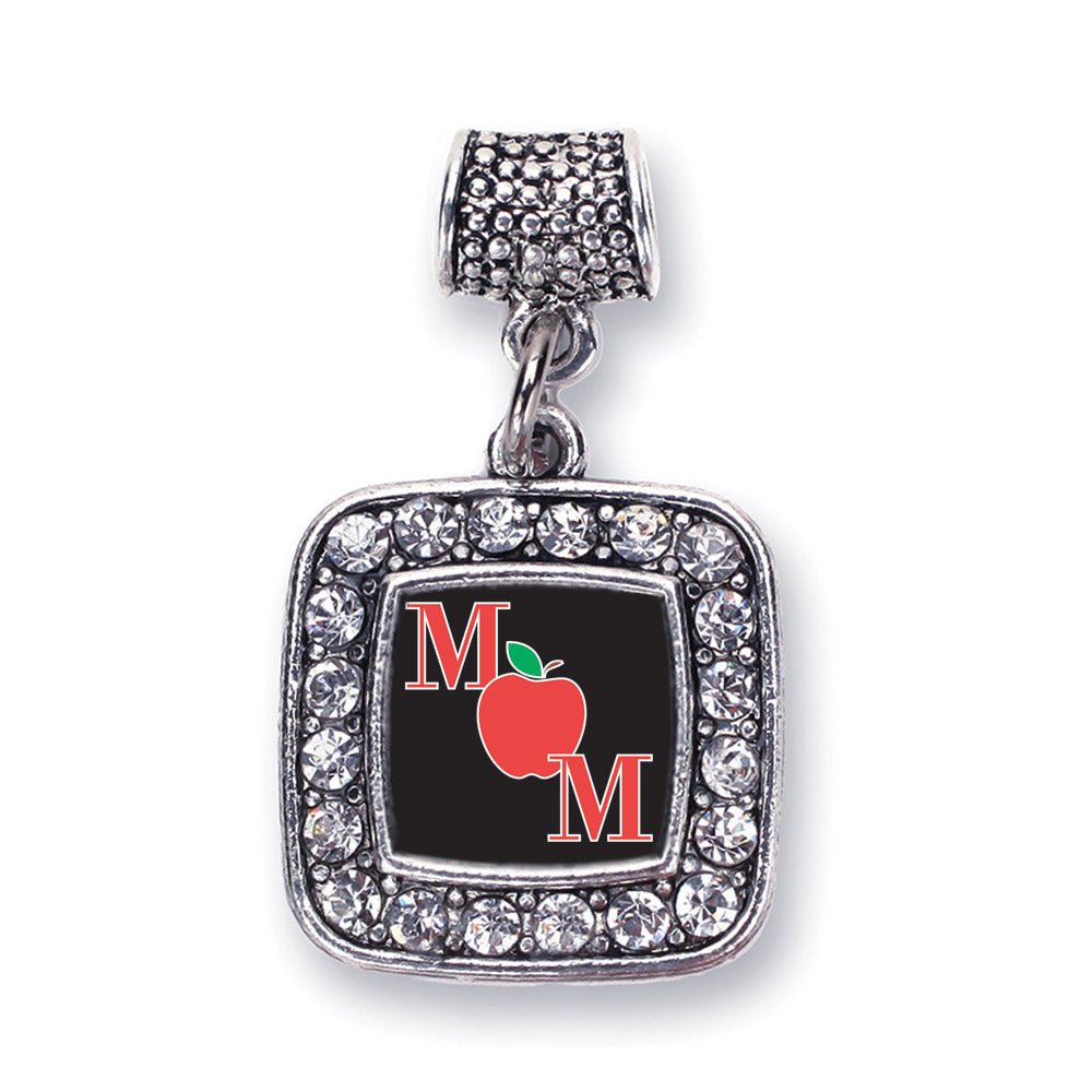 Our sparkling memory charm, equipped with a stylish charm attachment ring and the Teacher Mom square charm, is crafted from white metal with a silver plated finish and accented with cubic zirconia stones.