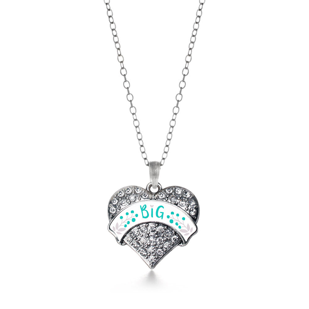 Silver Teal and Gray Big Pave Heart Charm Classic Necklace
