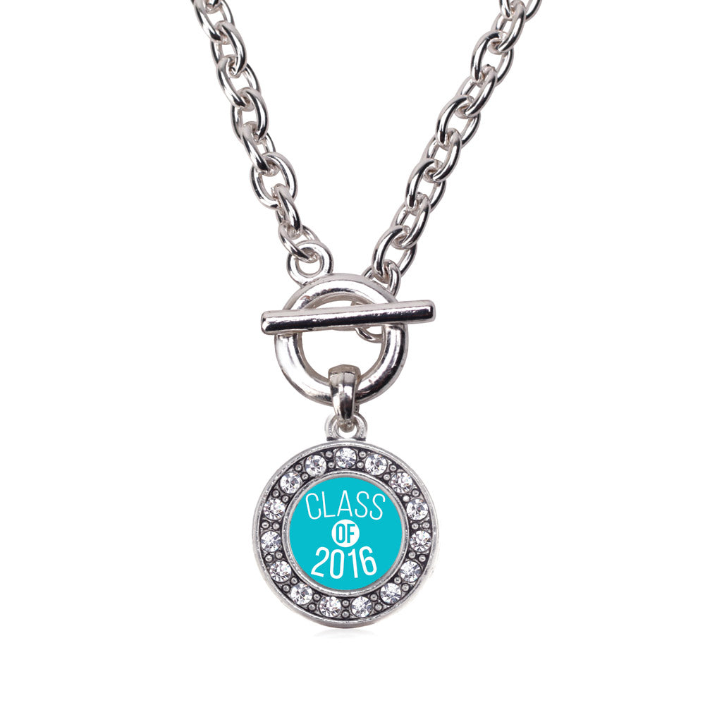Silver Teal Class of 2016 Circle Charm Toggle Necklace