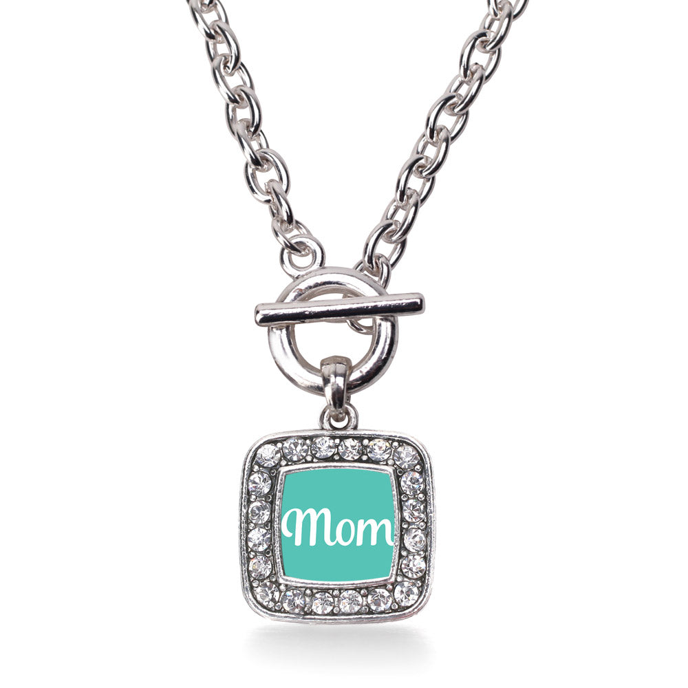 Our sparkling toggle necklace, equipped with a stylish toggle clasp and the Teal Mom square charm, is crafted from white metal with a silver plated finish and accented with cubic zirconia stones.