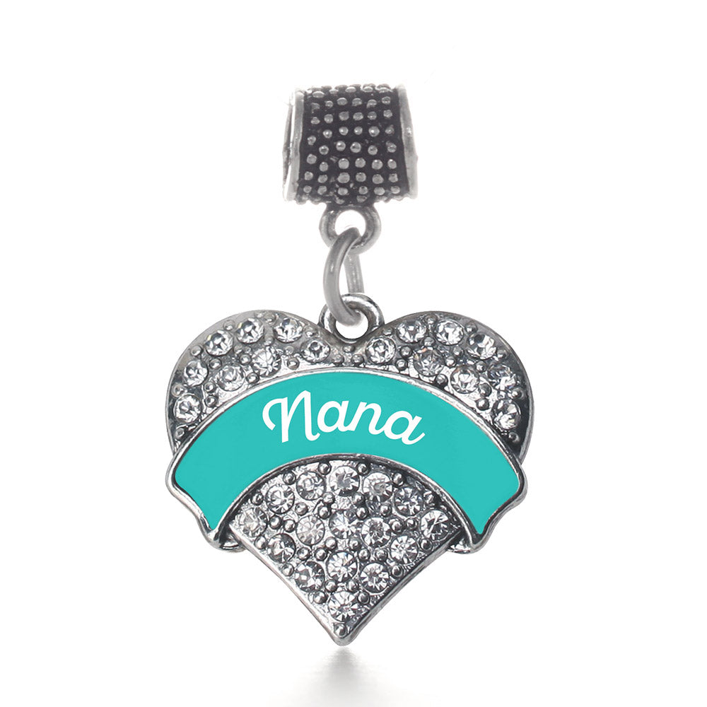 Our sparkling memory charm, equipped with a stylish charm attachment ring and the Teal Nana pave heart charm, is crafted from white metal with a silver plated finish and accented with cubic zirconia stones.