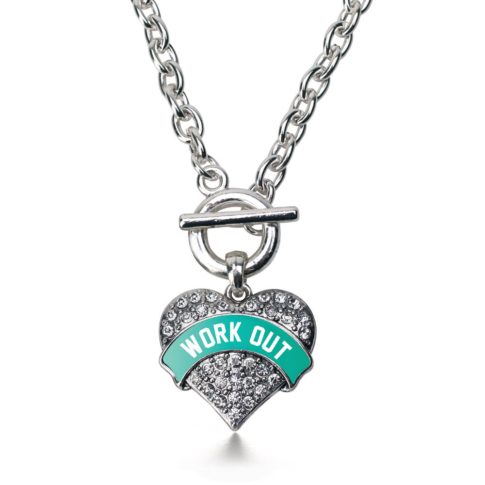 Our sparkling toggle necklace, equipped with a stylish toggle clasp and the Teal Work Out pave heart charm, is crafted from white metal with a silver plated finish and accented with cubic zirconia stones.