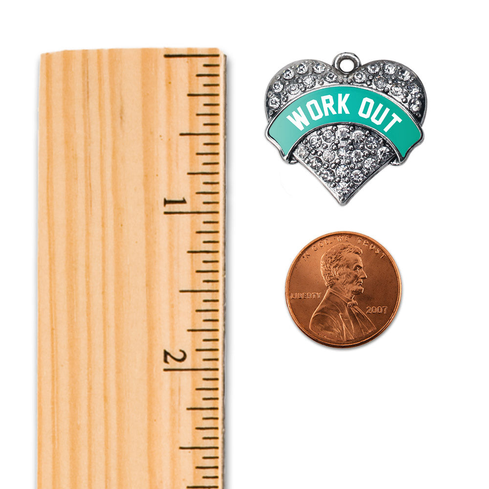 Silver Teal Work Out Pave Heart Charm Toggle Necklace