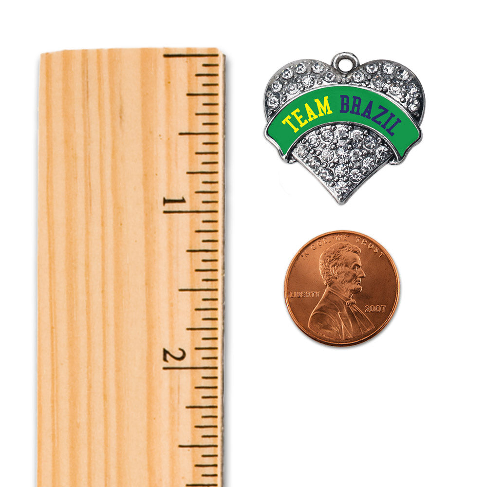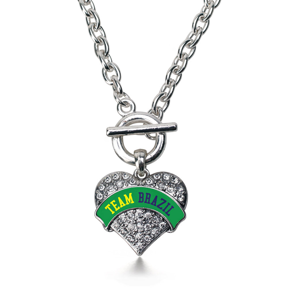 Our sparkling toggle necklace, equipped with a stylish toggle clasp and the Team Brazil pave heart charm, is crafted from white metal with a silver plated finish and accented with cubic zirconia stones.