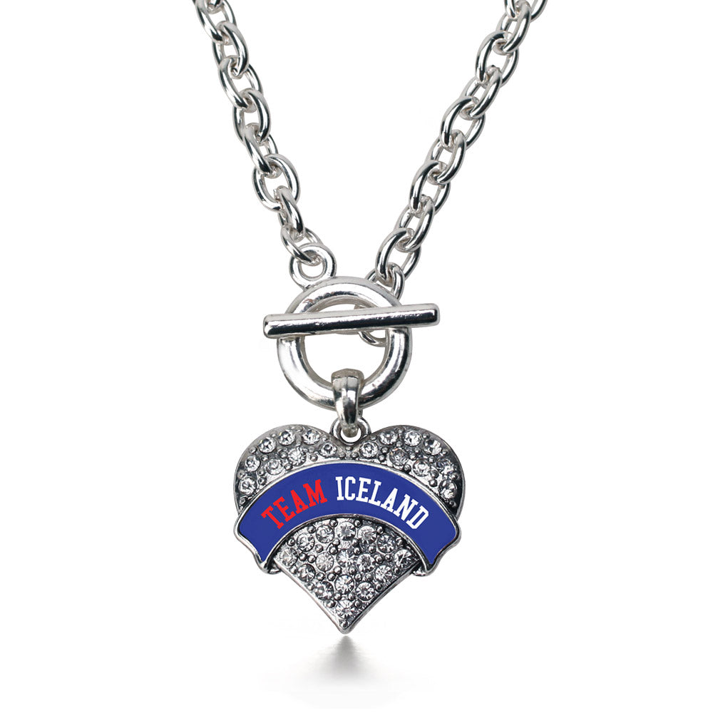 Silver Team Iceland Pave Heart Charm Toggle Necklace