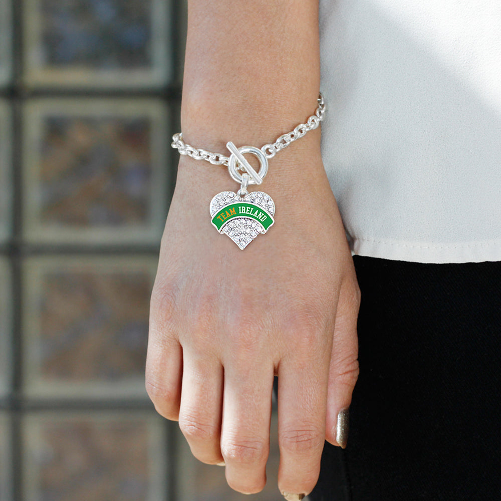 Silver Team Ireland Pave Heart Charm Toggle Bracelet