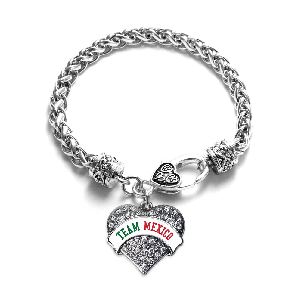 Our sparkling braided bracelet, equipped with a stylish lobster claw clasp and the Team Mexico pave heart charm, is crafted from white metal with a silver plated finish and accented with cubic zirconia stones.