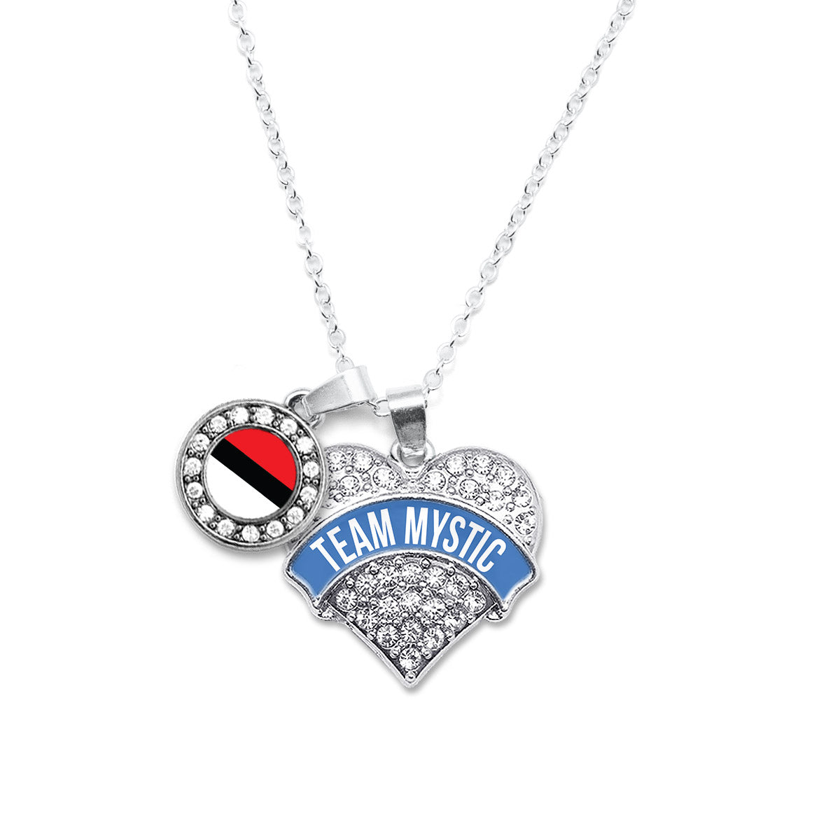 Our sparkling classic necklace, equipped with a stylish lobster claw clasp and the Team Mystic Duo pave heart charm, is crafted from white metal with a silver plated finish and accented with cubic zirconia stones.