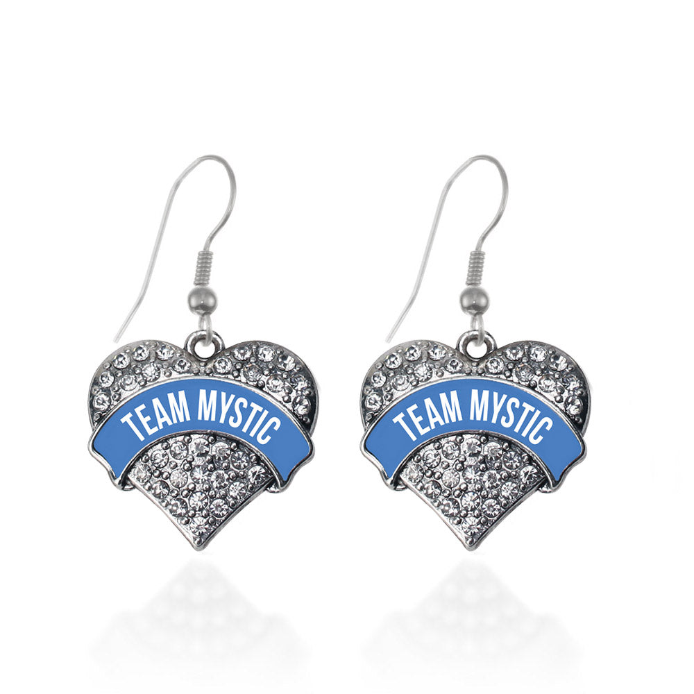 Our sparkling dangle earrings, equipped with a stylish french hook backing and the Team Mystic pave heart charm, is crafted from white metal with a silver plated finish and accented with cubic zirconia stones.