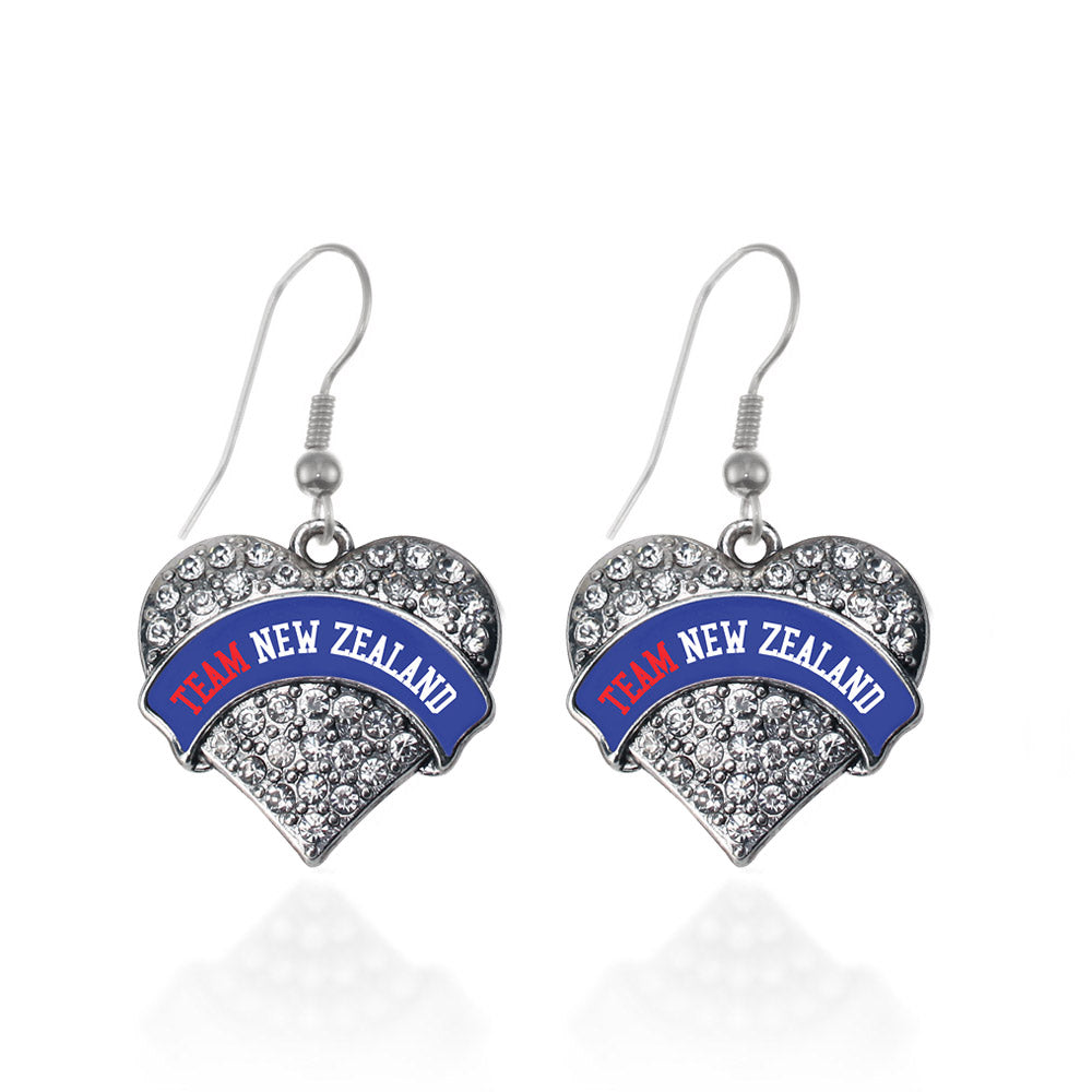 Silver Team New Zealand Pave Heart Charm Dangle Earrings
