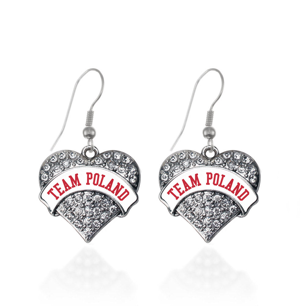 Silver Team Poland Pave Heart Charm Dangle Earrings