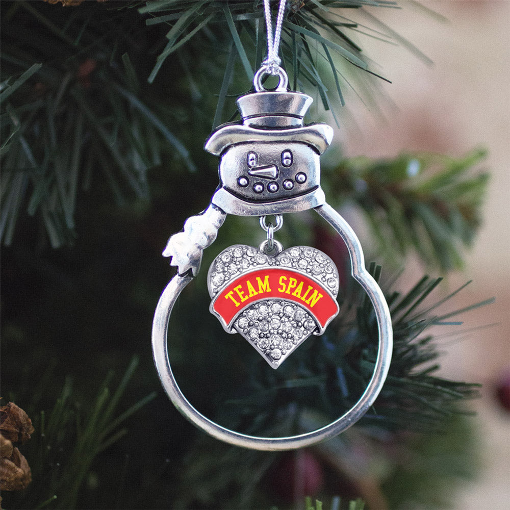 Silver Team Spain Pave Heart Charm Snowman Ornament