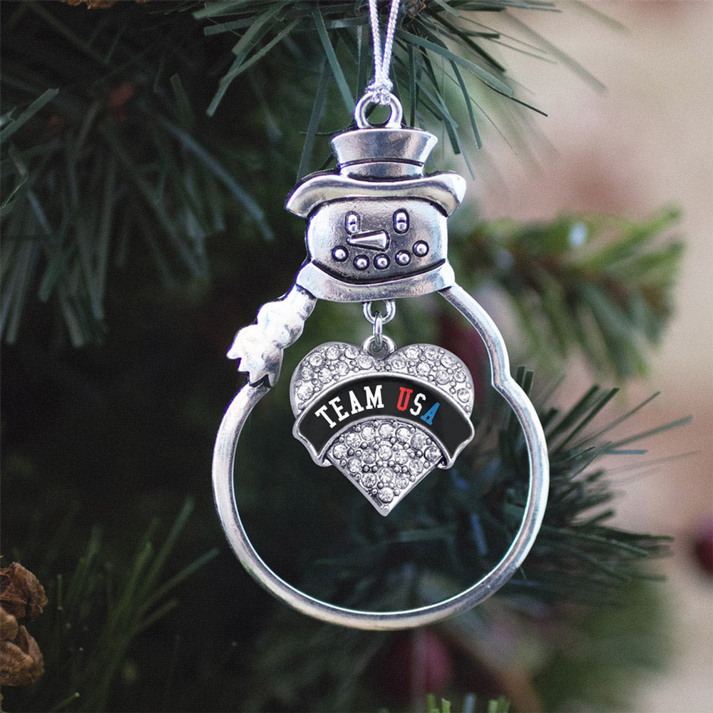 Silver Team USA - Black Banner Pave Heart Charm Snowman Ornament