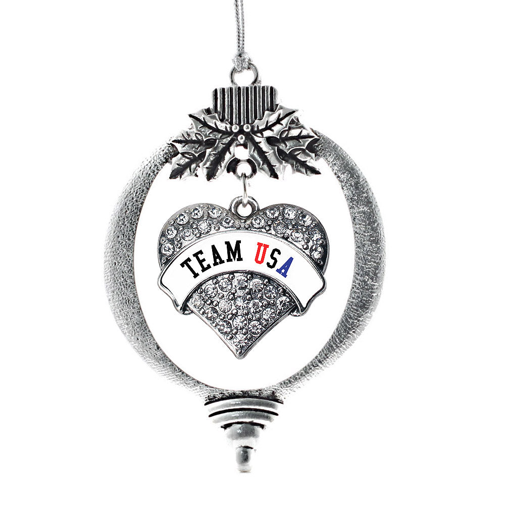 Our sparkling holiday ornament, equipped with a stylish silver rope and the Team USA - White Banner pave heart charm, is crafted from white metal with a silver plated finish and accented with cubic zirconia stones.