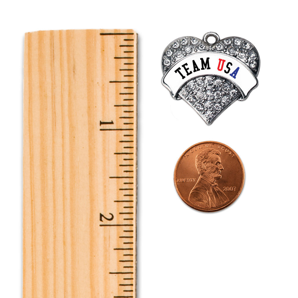 Silver Team USA - White Banner Pave Heart Charm Holiday Ornament