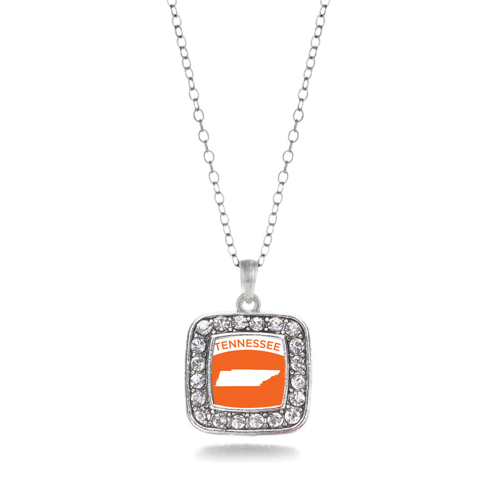 Our sparkling classic necklace, equipped with a stylish lobster claw clasp and the Tennessee Outline square charm, is crafted from white metal with a silver plated finish and accented with cubic zirconia stones.