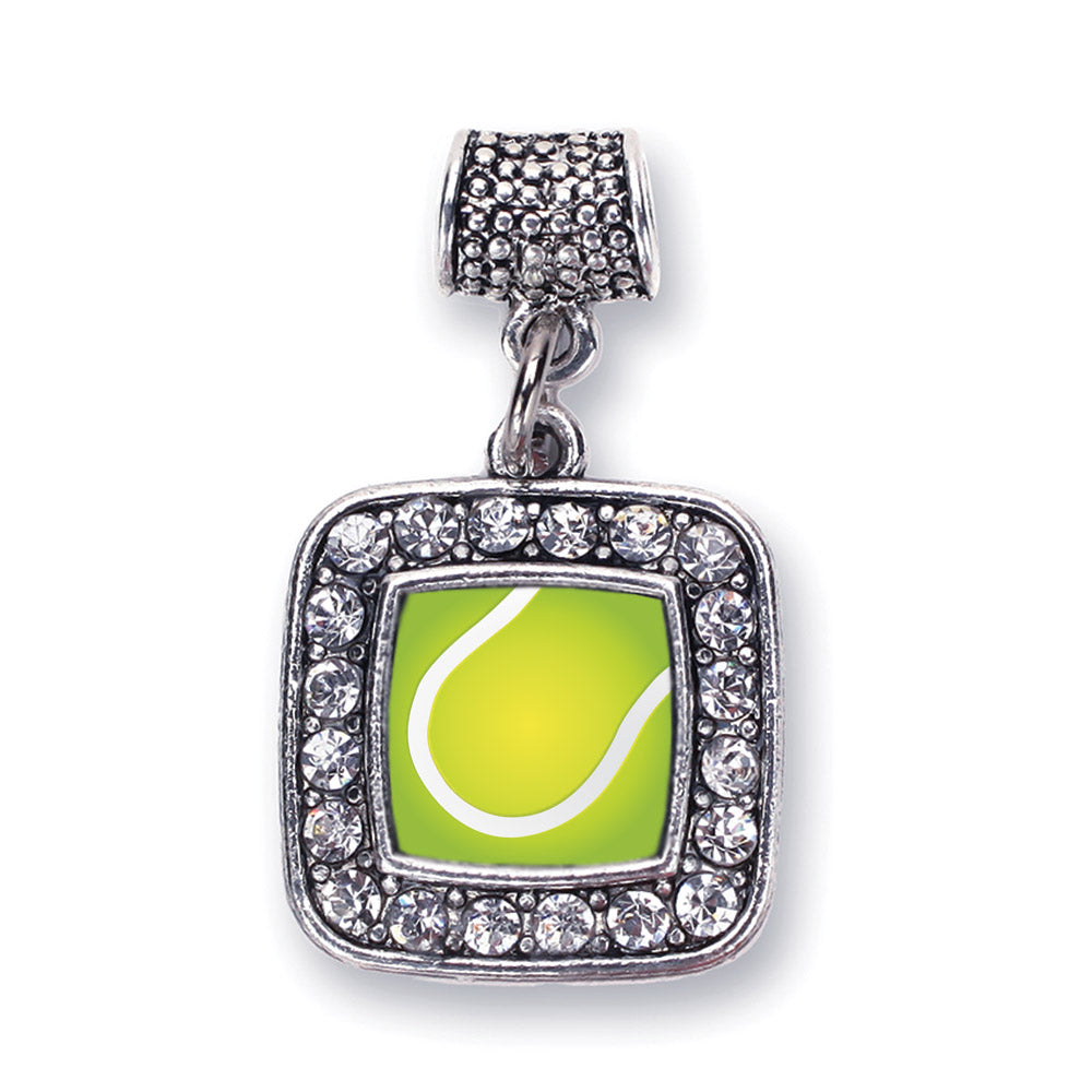 Our sparkling memory charm, equipped with a stylish charm attachment ring and the Tennis square charm, is crafted from white metal with a silver plated finish and accented with cubic zirconia stones.