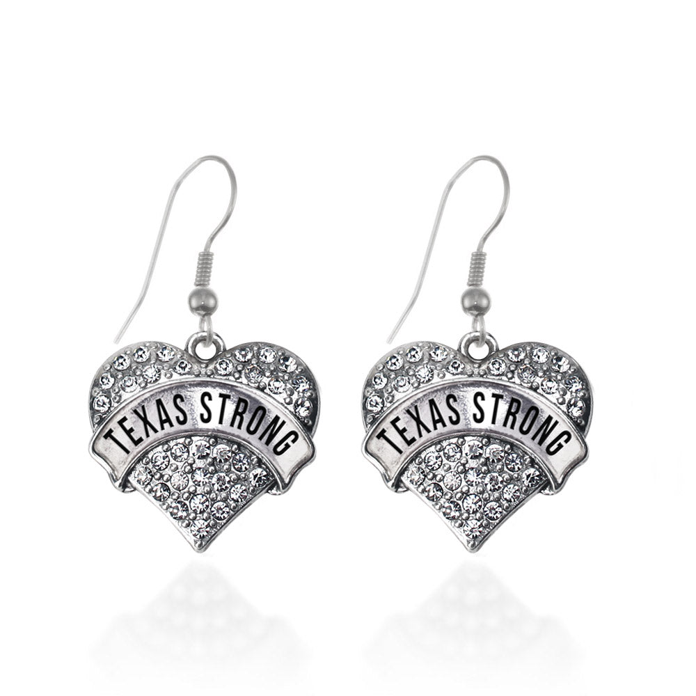 Silver Texas Strong Pave Heart Charm Dangle Earrings