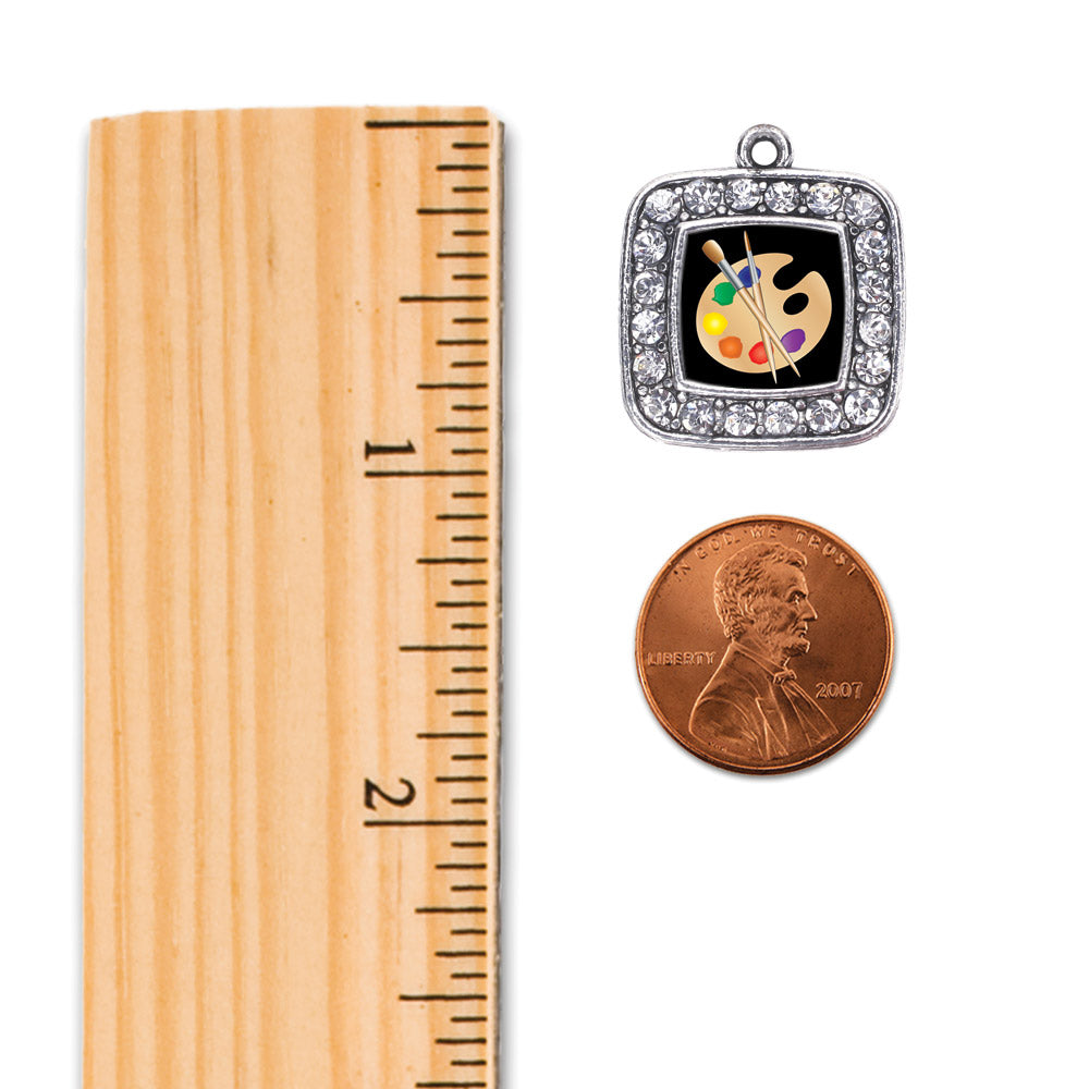 Our sparkling classic necklace, equipped with a stylish lobster claw clasp and the The Artist square charm, is crafted from white metal with a silver plated finish and accented with cubic zirconia stones.