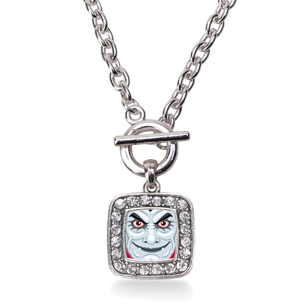 Silver Thirsty Vampire Square Charm Toggle Necklace